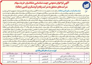 بر اساس این گزارش متقاضیان می‌توانند با رجوع به این آگهی (مندرج در روزنامه اطلاعات شماره ۲۹۰۱۹ در تاریخ ۱۴۰۴/۰۵/۲۱) از شرایط واگذاری آگاهی یابند.