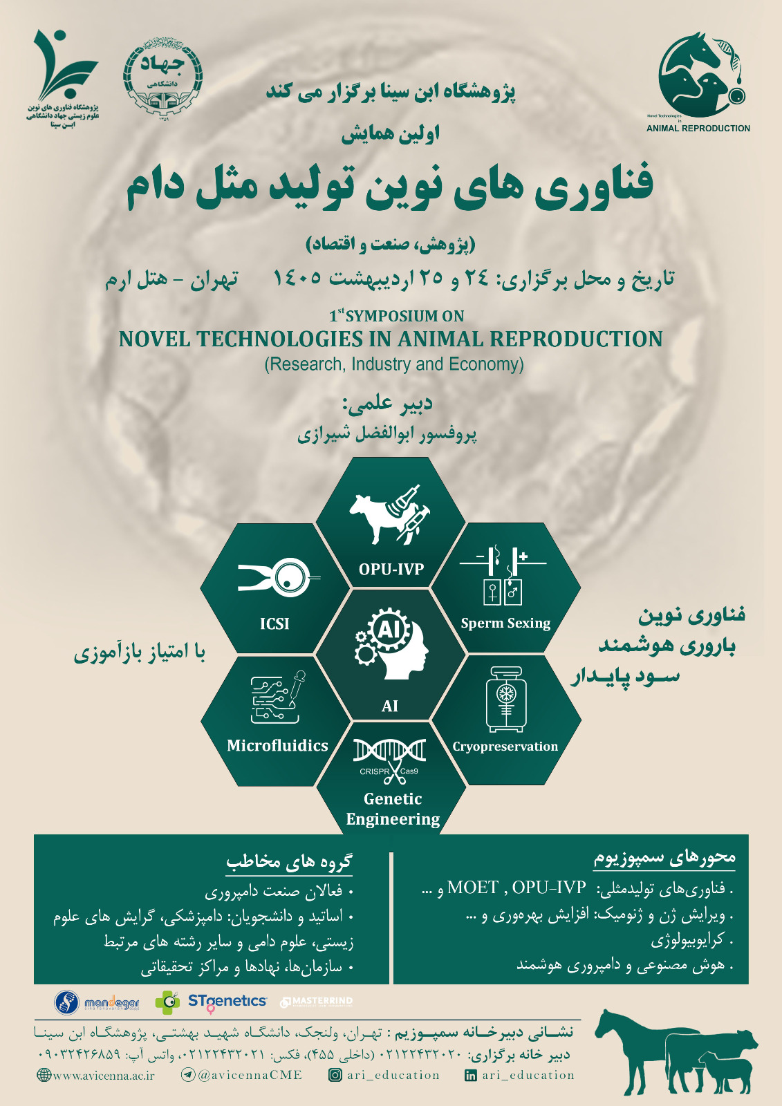 بانگ خبر، پژوهشگاه فناوریهای نوین علوم زیستی جهاددانشگاهی – ابنسینا با هدف تمرکز بر ابعاد پژوهشی، صنعتی و اقتصادی حوزه دامپروری و هوشمندسازی تولیدمثل، اولین همایش «فناوریهای نوین تولید مثل دام: پژوهش، صنعت و اقتصاد» را در تاریخ ۲۴ و ۲۵ اردیبهشت ۱۴۰۵ در هتل ارم تهران برگزار میکند.