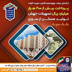 تسهیلات بانک سپه در چارچوب طرح‌ حمایتی «جهش تولید مسکن» و با هدف تقویت بخش تولید، رفع موانع و مشکلات مربوط به تأمین مسکن و افزایش توان خرید خانوارها پرداخت می‌شود.