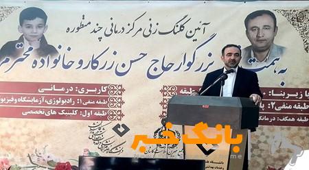 گفتنی است عملیات ساخت مرکز درمانی حاج حسن زرکار در زمینی به مساحت۳۶۰۰ متر مربع در ۴ طبقه آغاز شد که با اعتباری بالغ بر ۱۵۰ میلیارد تومان از منابع خیرین و در مدت سه سال، ساخته خواهد شد.