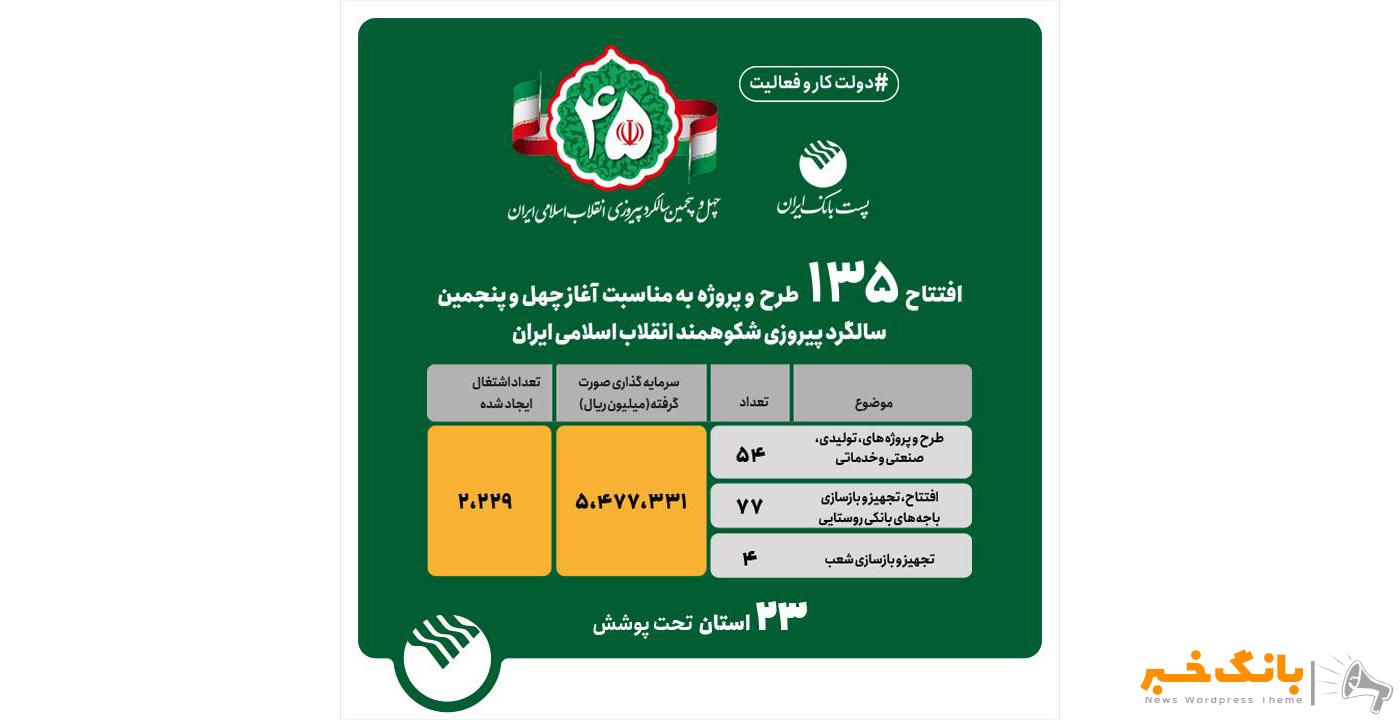 بانگ خبر، به گزارش اداره کل روابط عمومی پست بانک ایران، افتتاح، تجهیز و بازسازی ۷۷ باجه بانکی روستایی با اعتباری بالغ بر ۳۷۷.۵۰۰ میلیون ریال و با ایجاد شغل…