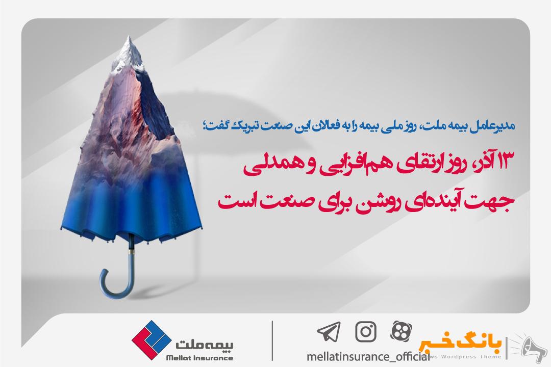 مدیرعامل بیمه ملت روز ملی بیمه را به فعالین این صنعت تبریک گفت / ۱۳ آذر روز ارتقای همافزایی و همدلی جهت آیندهای روشن برای صنعت است