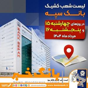 فعالیت شعب کشیک بانک ملی ایران در استان تهران در روز چهارشنبه ۱۵ مردادماه