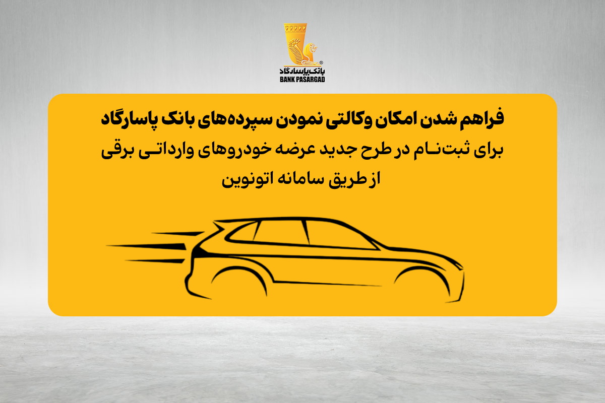 امکان وکالتی نمودن غیرحضوری تمامی حسابهای «بانک پاسارگاد» به منظور ثبتنام در مرحله جدید (دوم) طرح عرضه خودروهای وارداتی، فراهم شد.